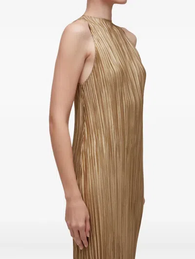 Plisse Maxi Dress In Brown