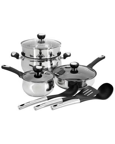 Baldwyn 10 Piece Stainless Steel Belly-shaped Nonstick Cookware And Utensil Set In Silver