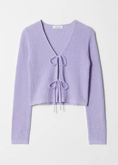 Alpaca Blend Balloon Sleeves Knit Cardigan In Purple