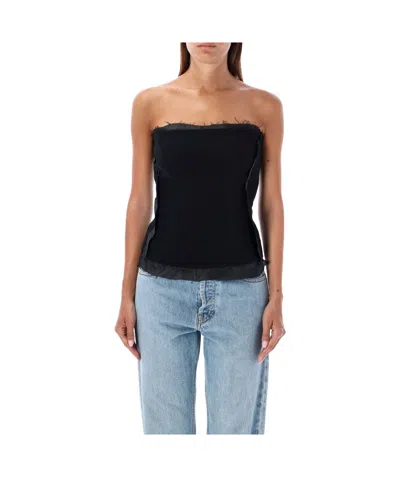 Berlin-based label Ottolinger is a collaboration between Swiss-born designers Christa Bösch and Cosima Gadient. Having met during their studies at the Basel School of Design, the two quickly began making waves with their avant-garde, anti-commercial, and fearlessly destructive challenge to luxury fashion’s status quo. While the brand’s labor-intensive creations are held to the highest standards in couture quality, the founders’ signature aesthetic truly blazes through in their uniquely hands-on, after-the-fact process of abstraction and deconstruction. Immaculately finished products are calculatedly slashed, ripped, and manipulated into bold new forms. The resulting re-assemblage represents an unlikely harmony between their meticulous construction and the antithetical spirit of punk-tinged rebellion. Military-inspired trousers and outerwear are scorched into near-oblivion, exposed seams trace ragged trails through shredded skirts, and raw-edged cut-outs linked by asymmetric knots imbue casual jersey separates with disorderly seductiveness.