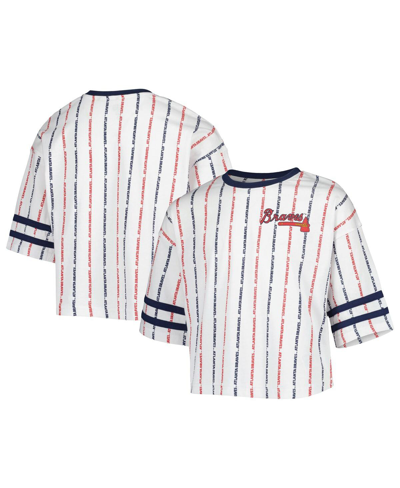Kids' Big Girls White Atlanta Braves Ball Striped T-shirt