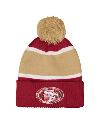 Kids' Girls Scarlet San Francisco 49ers Let's Play Cuffed With Pom Knit Hat In Brown