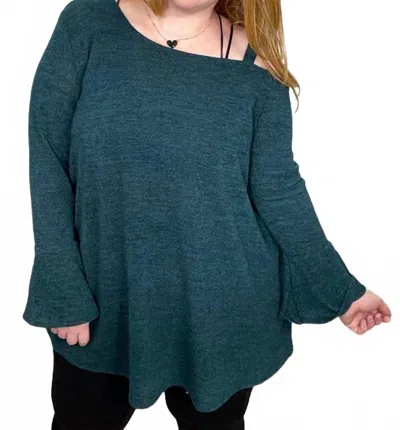 Cold Shoulder Detail Top With Ruffle Sleeves In Emerald Green
