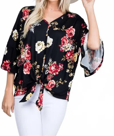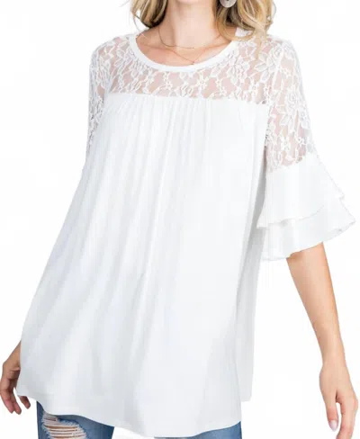 Lace And Ruffle Tiered Sleeve Blouse In Black In Blue