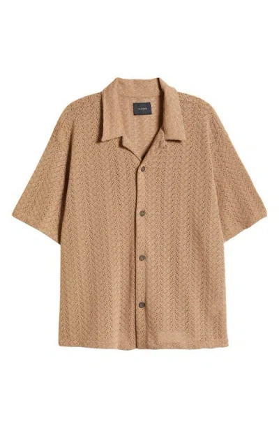 Lance Open Stitch Knit Camp Shirt In Brown