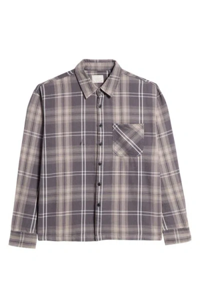 Plaid Cotton Button-up Shirt In Grey