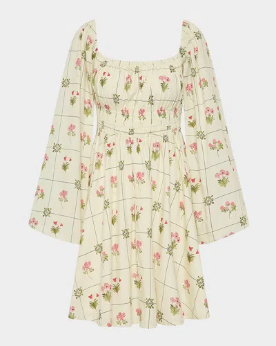 Aria Tiered Tile-print Linen Maxi Shirtdress In Siesta Tile