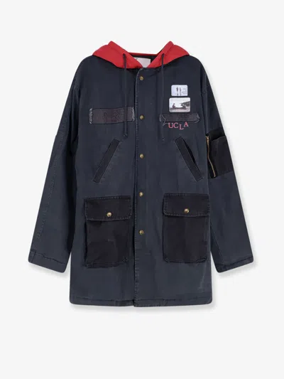 Hooded Patch-detail Jacket In Blue