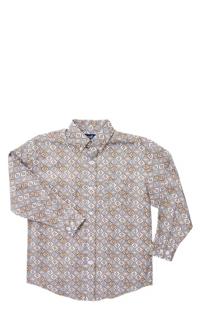 Slim Boy's Gray Abstract Geo Print Western Shirt In Multi