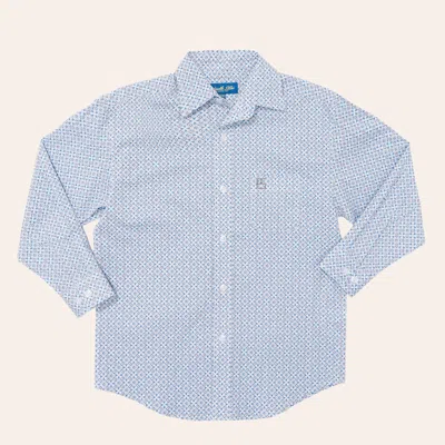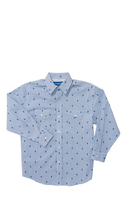 Slim Boys' Blue Diamond Medallion Print Long Sleeve Shirt