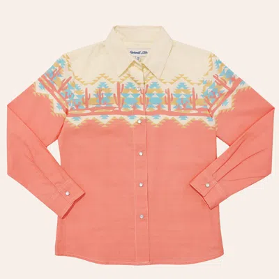 Slim Girls' Coral Cactus Border Print Long Sleeve Pearl Snap Western Shirt In Multi