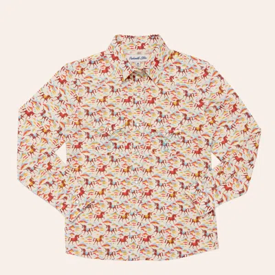 Slim Girls' Ecru & Multicolor Unicorn Print Long Sleeve Pearl Snap Western Shirt