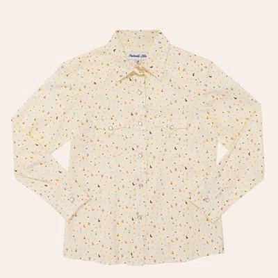 Slim Girls' Ecru Mini Teepee Print Long Sleeve Pearl Snap Western Shirt In Neutral