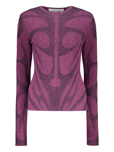 Illusion Floral Jacquard Rib Sweater Skirt In Multi