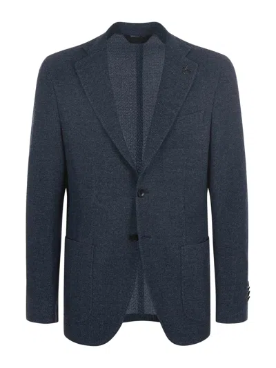Man Blazer Blue Size 42 Virgin Wool, Silk, Linen, Elastane
