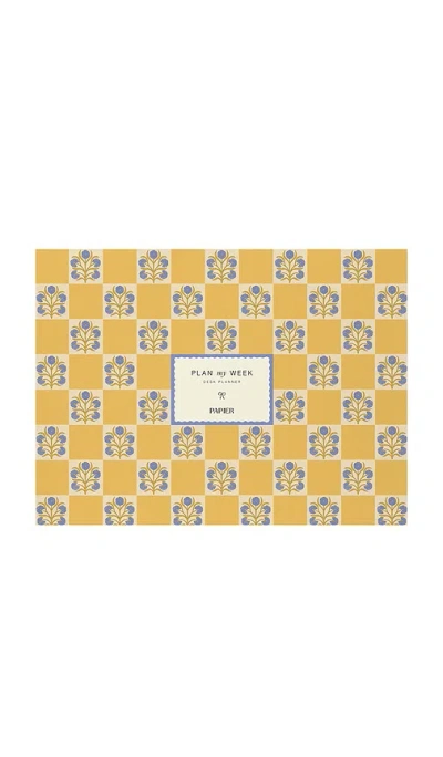 Floral Checkerboard Undated Weekly Desk Planner In Yellow