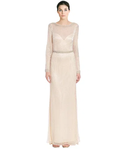 Pre-owned Black Kim Blush Long Sleeve Beaded Illusion Yoke Evening Gown Dress Sze 6 In Pink