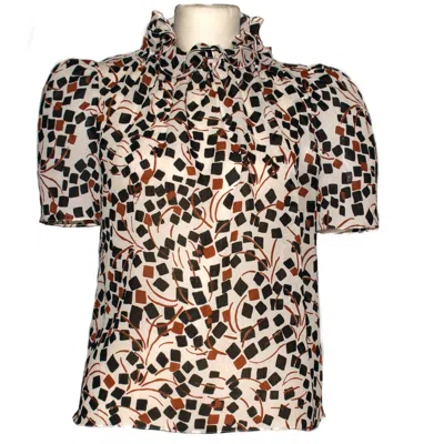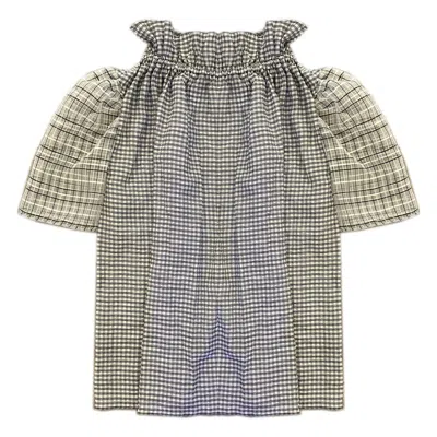 Women's Black / White Plaid Mixed Media Lotus Top In Multi