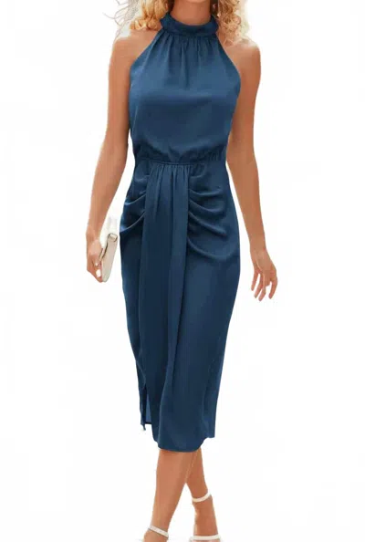 Sienn Satin Ruched Sleeveless Dress In Blue