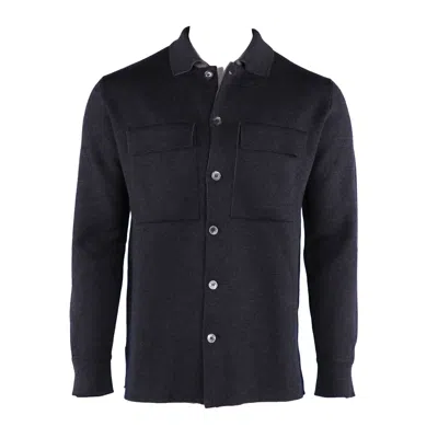 Men's Double Reversible Extrafine Full Zip Mock In Navy & Grey
