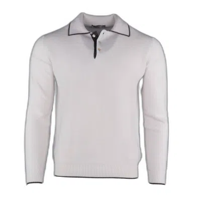 Men's Knitted Cashmere Long Sleeve Polo In Stucco In Multi