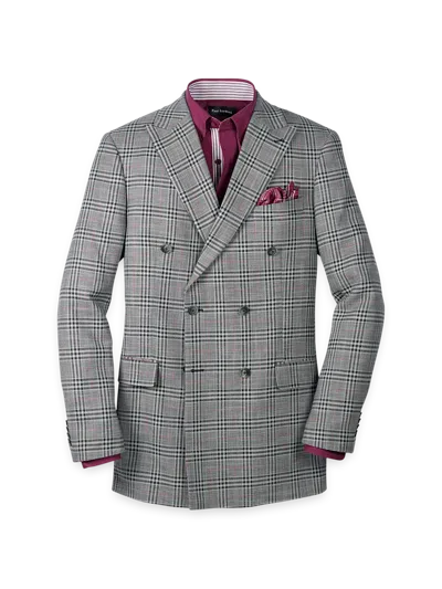 Black White Cotton Blend Plaid Double Breasted Peak Lapel Sport Coat
