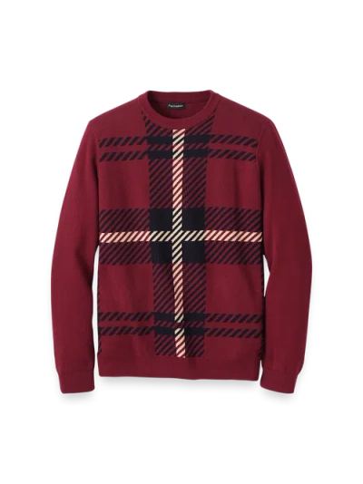 Washable Merino Wool Houndstooth V-neck Sweater In Burgundy