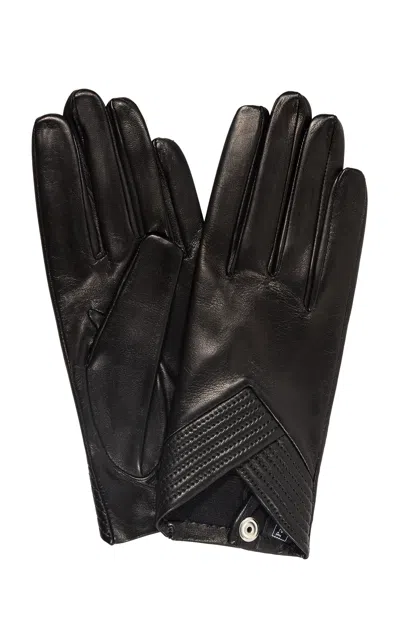 Winnie Wood Silk Lined Leather Gloves In Black/gold