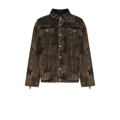 Black / Brown Your Itch Colorblocked Denim Jacket Men - Brown