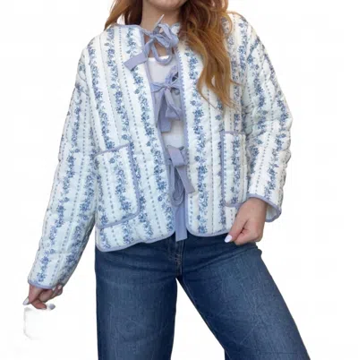 Floral Quilted Bow Jacket In Blue