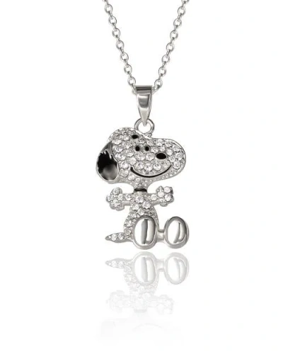 Kids' Snoopy Silver Plated 3d Pave Pendent, 18'' Chain In Metallic