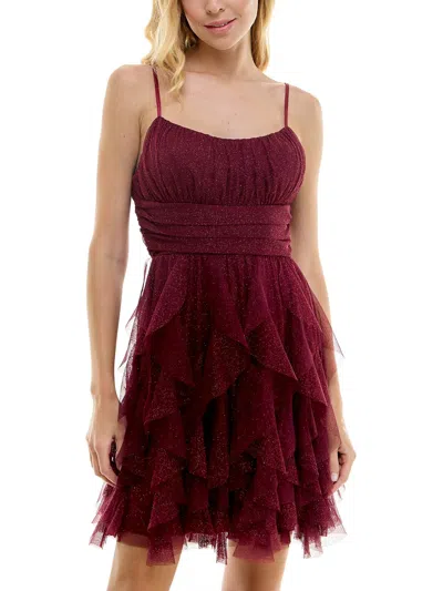 Juniors' Strappy Glitter Embellished Petal Dress In Blue
