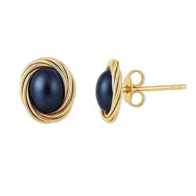 Women's Formal Black Pearl Stud Earrings, Gold-filled