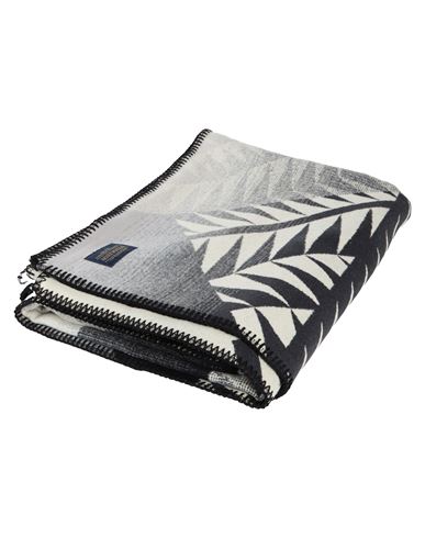 Jacquard Unnapped Wool Blend Blanket In Black