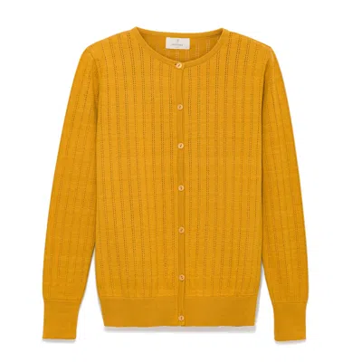 Women's Brown Celine Openwork Knit Cardigan In Mustard