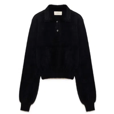 Women's Lucy Polo-neck Crop Knit Blouse In Black