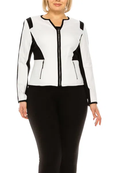 Pocket Long Sleeve Blazer In White Black