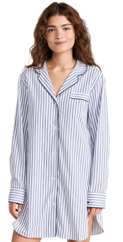 Luxe Pima Navy French Ticking Nightshirt Navy In Blue