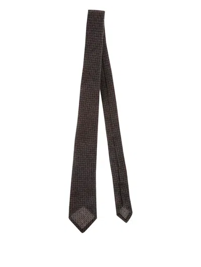 Geometric-pattern Wool Tie In Brown