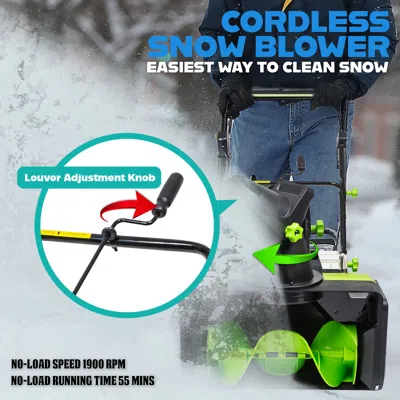 20" Cordless Brushless Snow Thrower With 2*20v Lithium-ion Batteries
