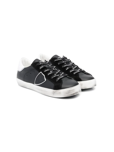 Kids' Logo-patch Leather Sneakers In Black