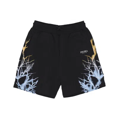 Men's Short Tracksuit Pants Bicolor Lightning Print Shorts Black