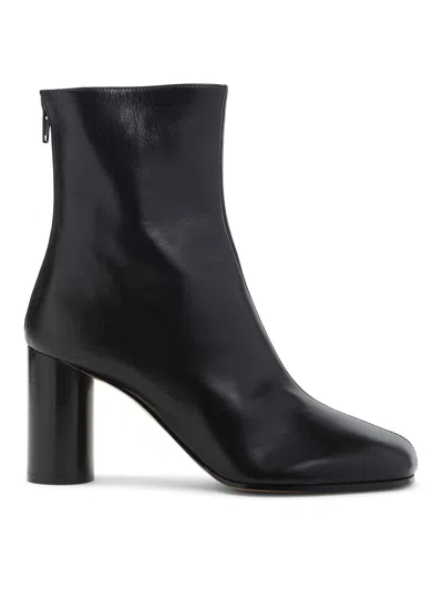 Smooth Leather Ankle Boots With Cylindrical Block Heel In Black
