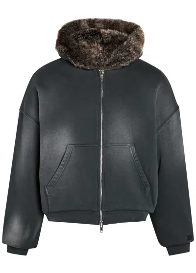Reversible Hooded Faux Fur Cotton Jacket In Black
