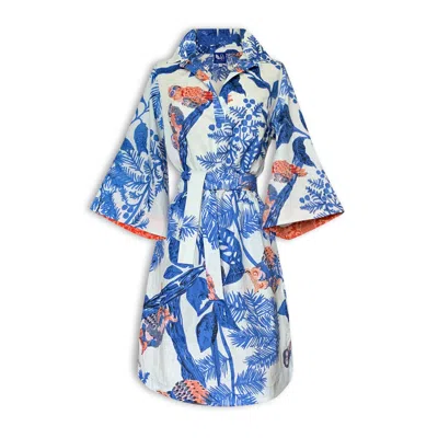 Women's Blue / Red Kimono Cotton Tassels Owl Blue In Multi