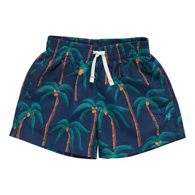 Men's Palm Tree Swim Shorts In Navy In Blue