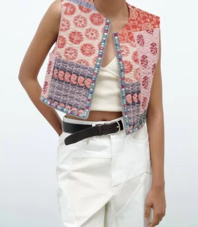 Print Quilted Vest In Orange/pink In Multi