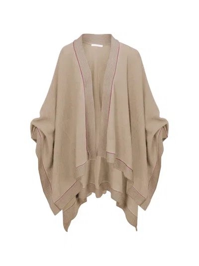 Striped Open-front Cape In Neutral
