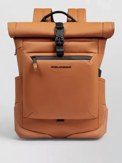 Roll Top Fabric Backpack Adjustable Straps In Brown