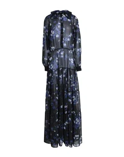 Pleated Long-sleeve Midi Dress In Blue